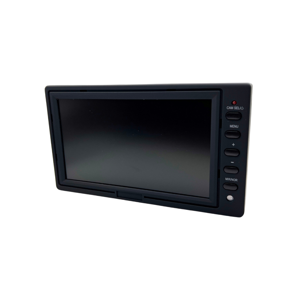 This HD 7” LCD monitor is a high-definition wide-screen monitor that is a fantastic safety addition to any vehicle. It helps drivers have a full 360° view around their vehicle and eliminates dangerous blind spots. The device will be connected to multiple cameras around the vehicle and camera streams will instantly appear on screen and automatically switch when the vehicle is reversing or indicating. If connected to a VMC4 or VMC8, the monitor can split and show multiple camera streams at once.